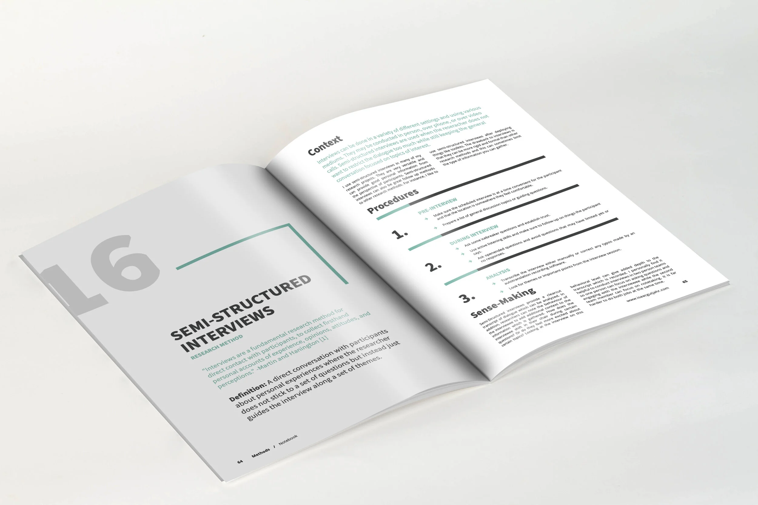 As a researcher, I am constantly learning new methods and building my UX repertoire. I keep a running notebook of my favorite methods. The notebook includes how I define the methods, procedures for using them, and examples from past projects.
